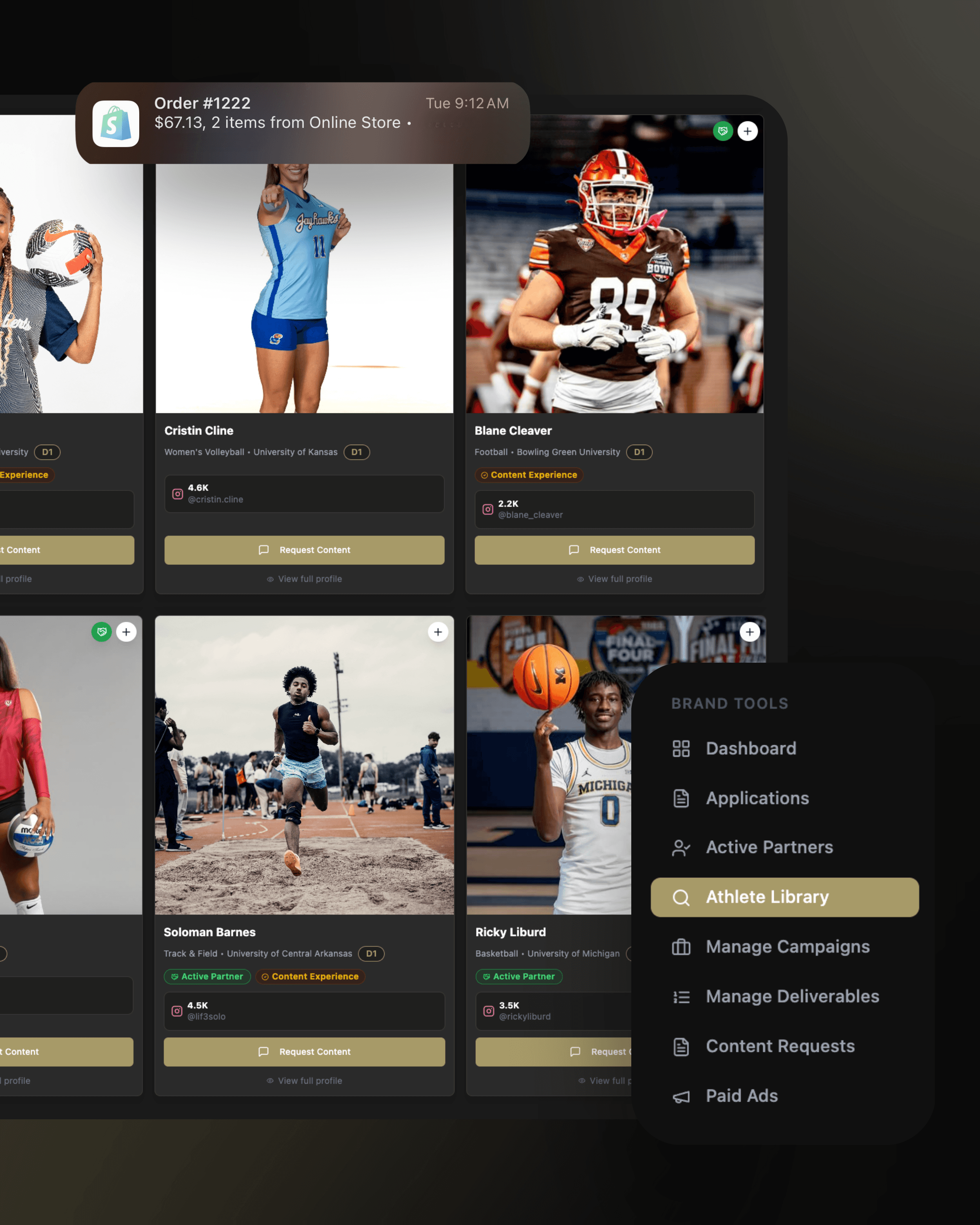 across NIL campaigns, merch collaborations, affiliate connections, and brand activations.