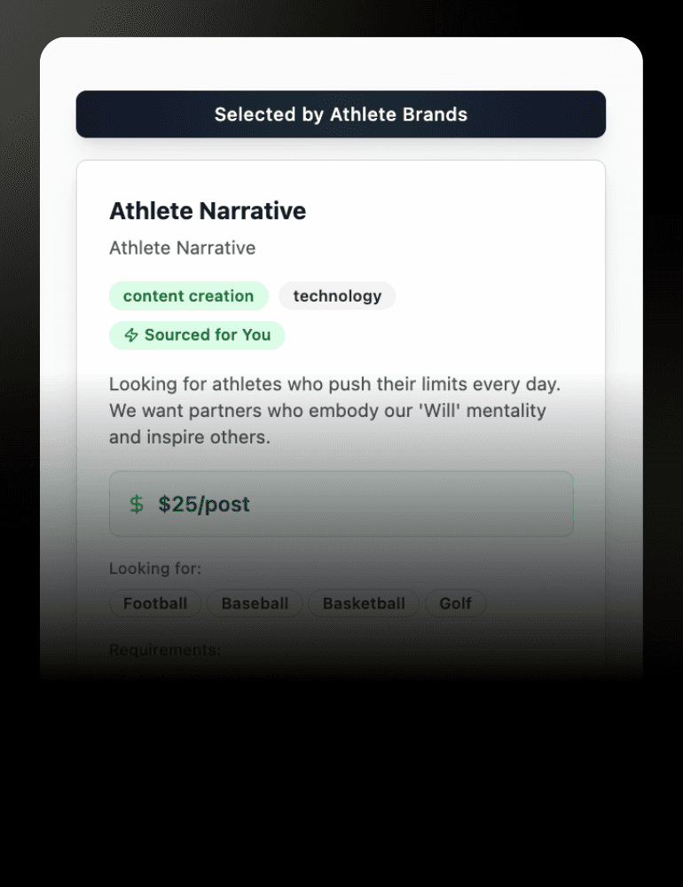 Connect with new brands, new athletes, and built campaigns for your agency. Expand your network and find opportunities that match your goals.