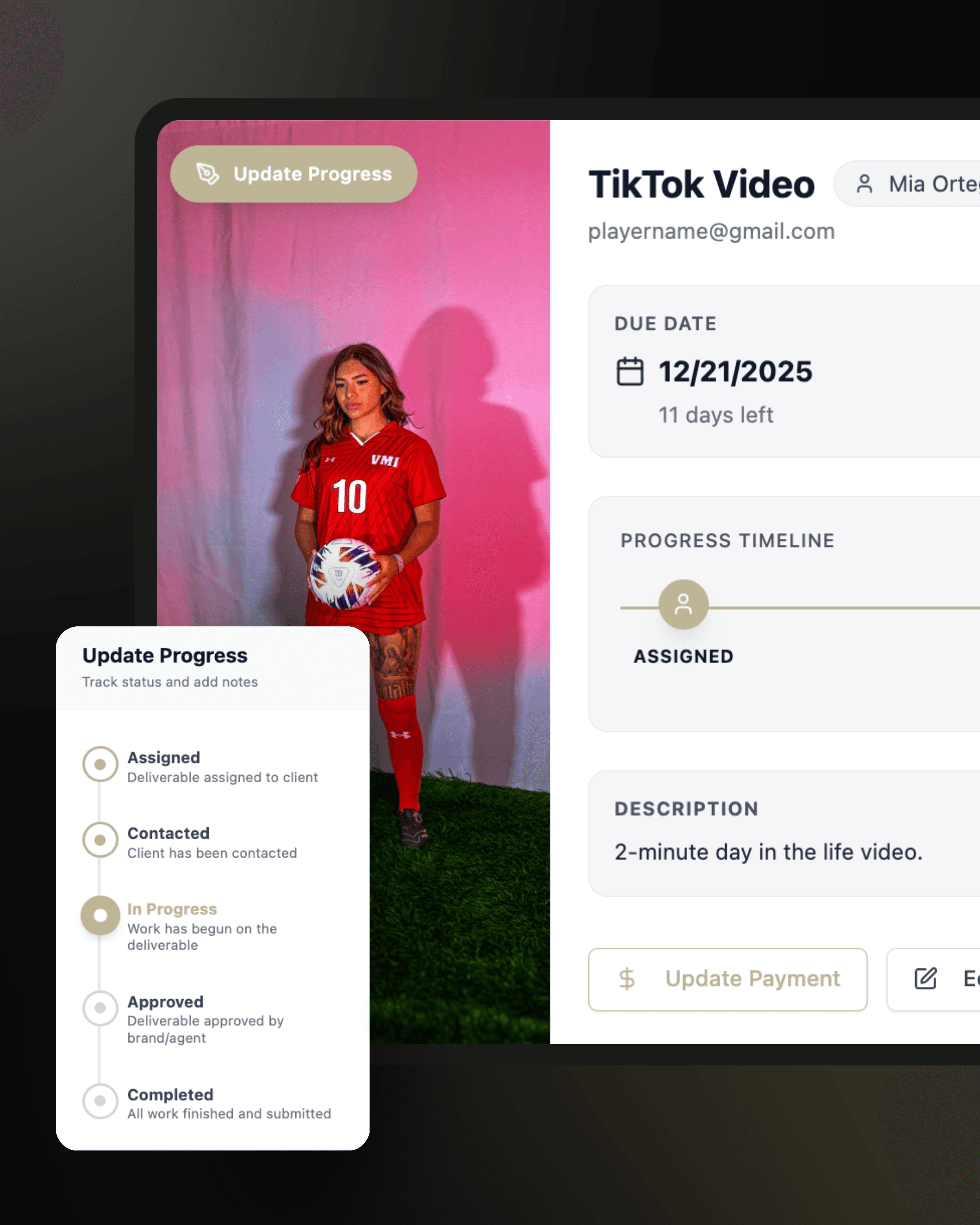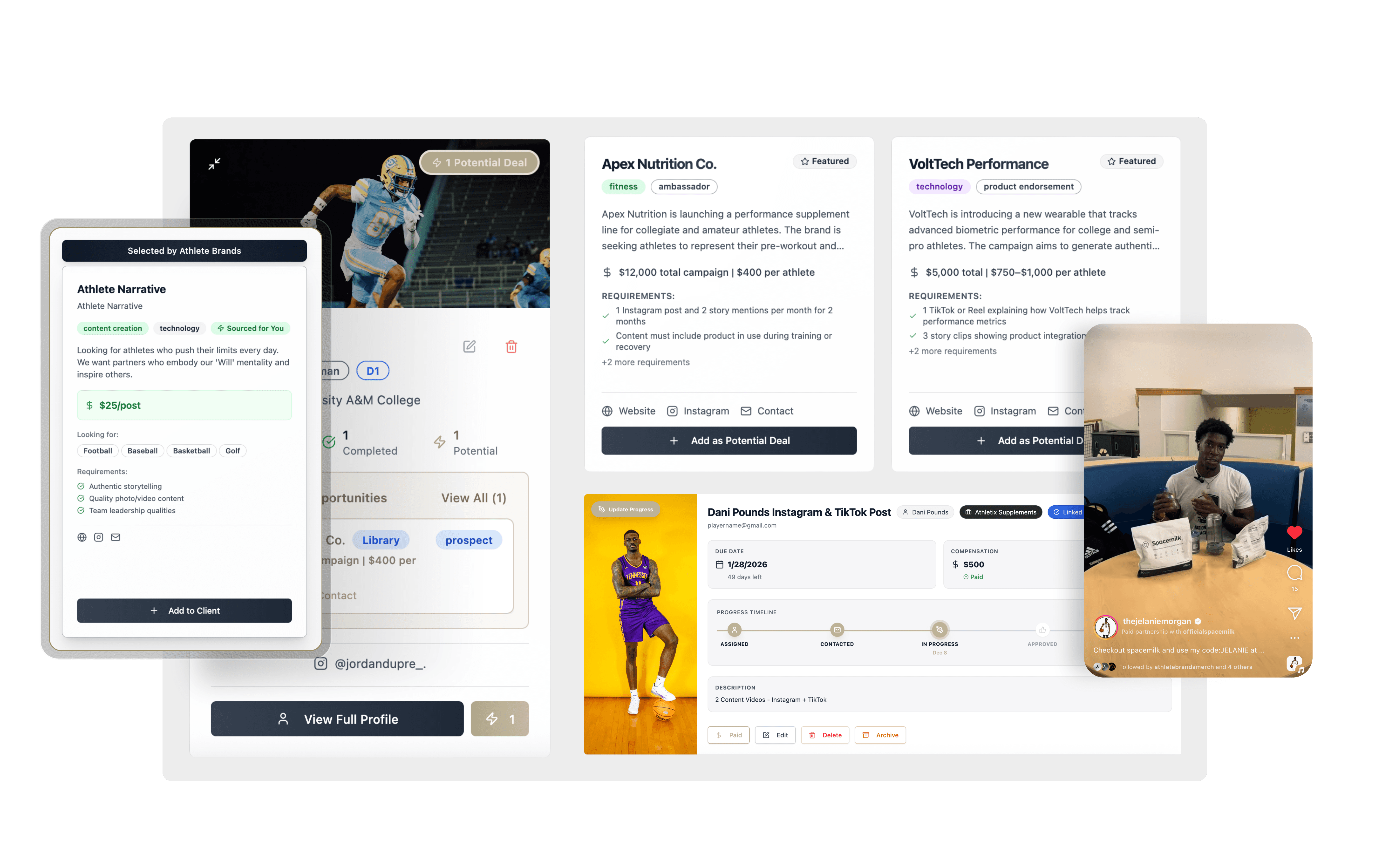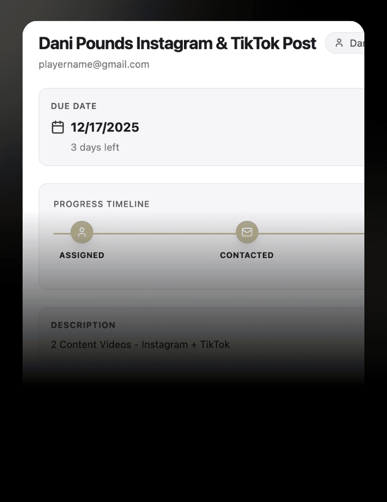 one simple dashboardManage every athlete, campaign, deliverable, and brand relationship from one organized dashboard designed for clarity and efficiency.