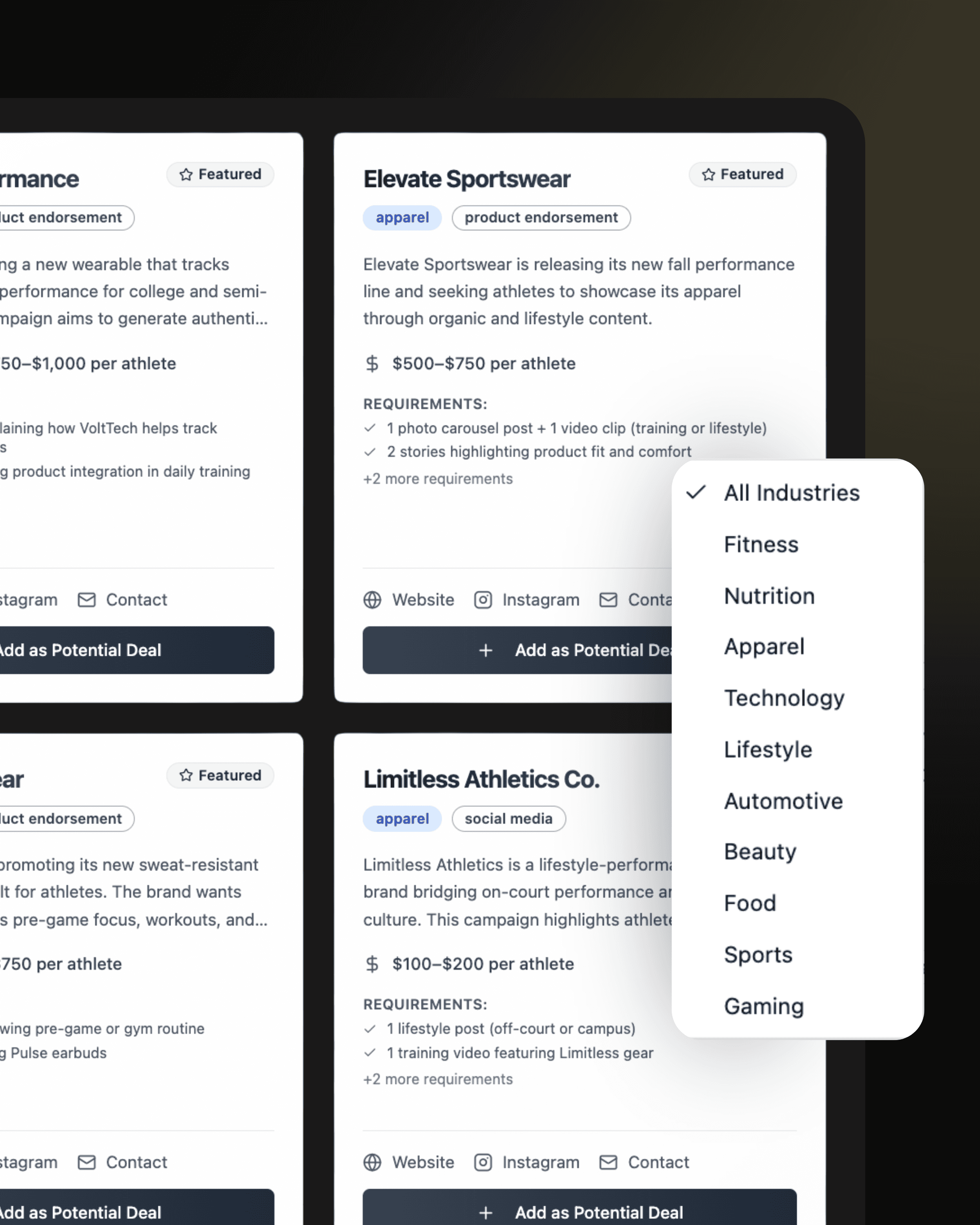 NIL Deal Sourcing + Brand Library