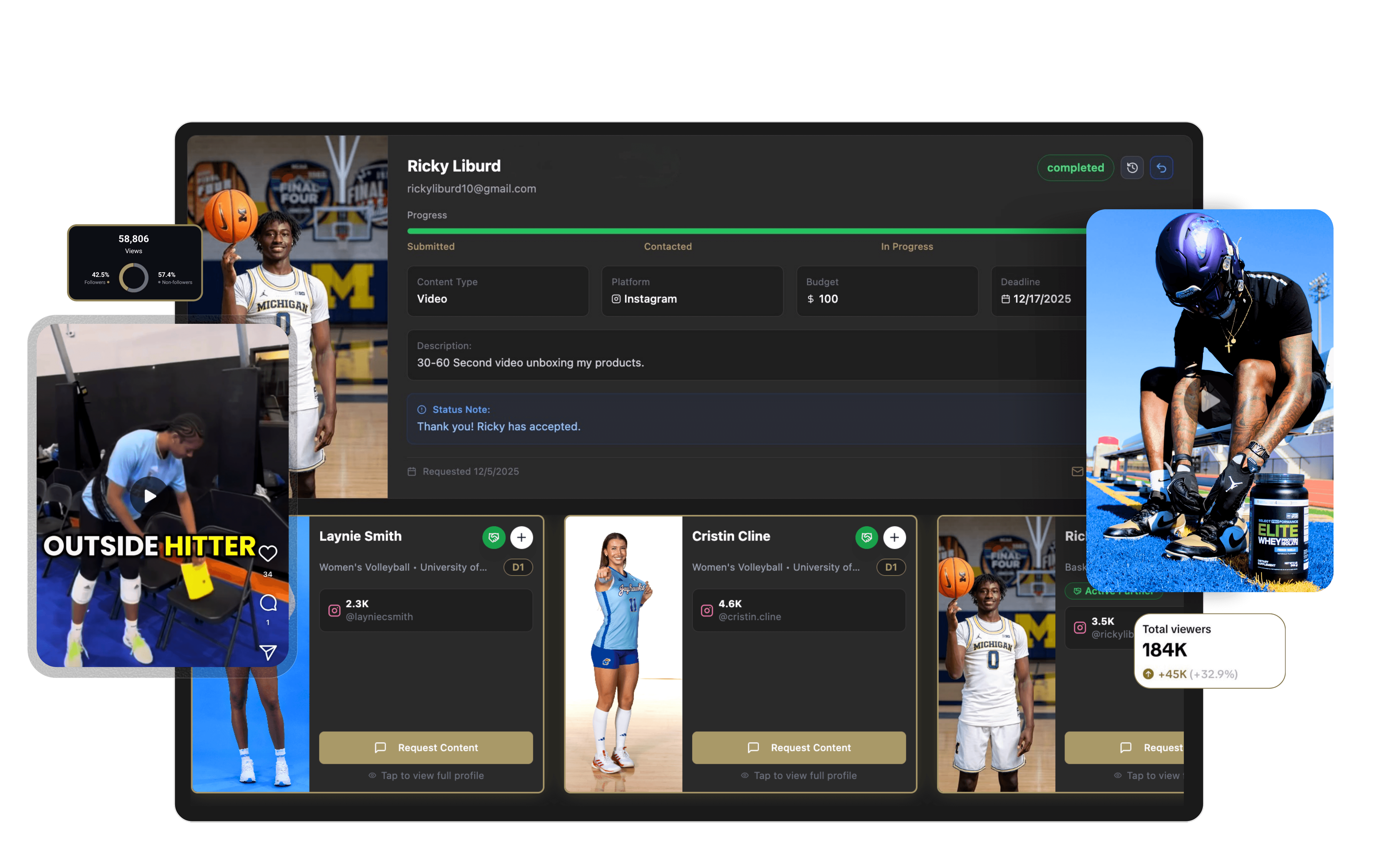 Our platform connects you with athletes who create authentic content that drives real views, engagement, and sales for your next campaign.