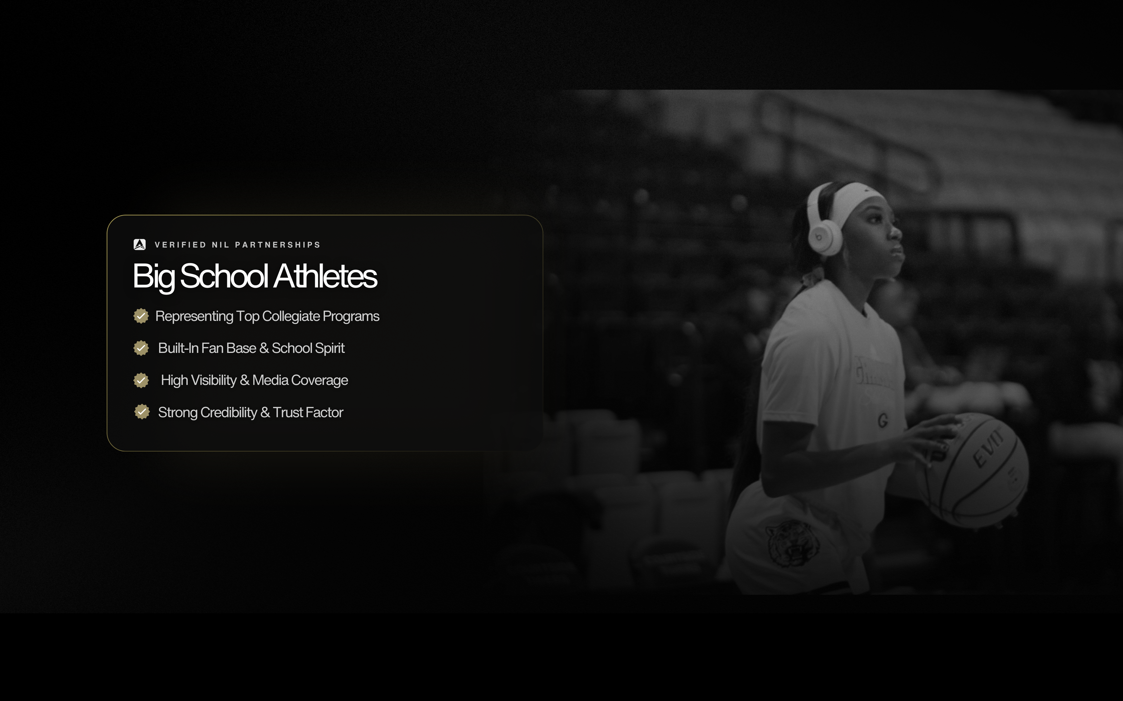 Big school athletes bring the credibility and visibility of nationally recognized programs. Representing some of the most well-known universities and colleges, they carry strong reputations and large, loyal fan bases. For brands, this category offers access to built-in reach, instant recognition, and association with established athletic programs that elevate brand trust and awareness.