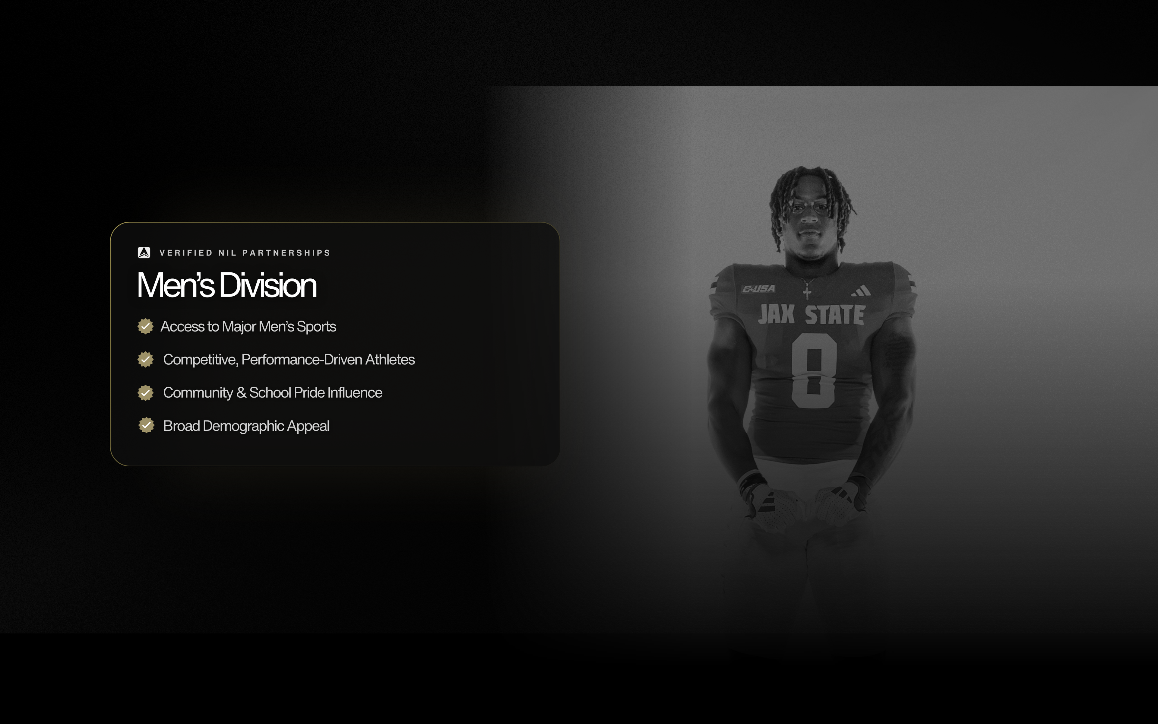 Our men’s division spans every level of sport, from high school prospects to collegiate standouts. Brands working with male athletes gain access to diverse audiences across basketball, football, baseball, and more, with opportunities to connect with both local communities and national fan bases. This category is perfect for companies looking to align with strength, competition, and athletic tradition.